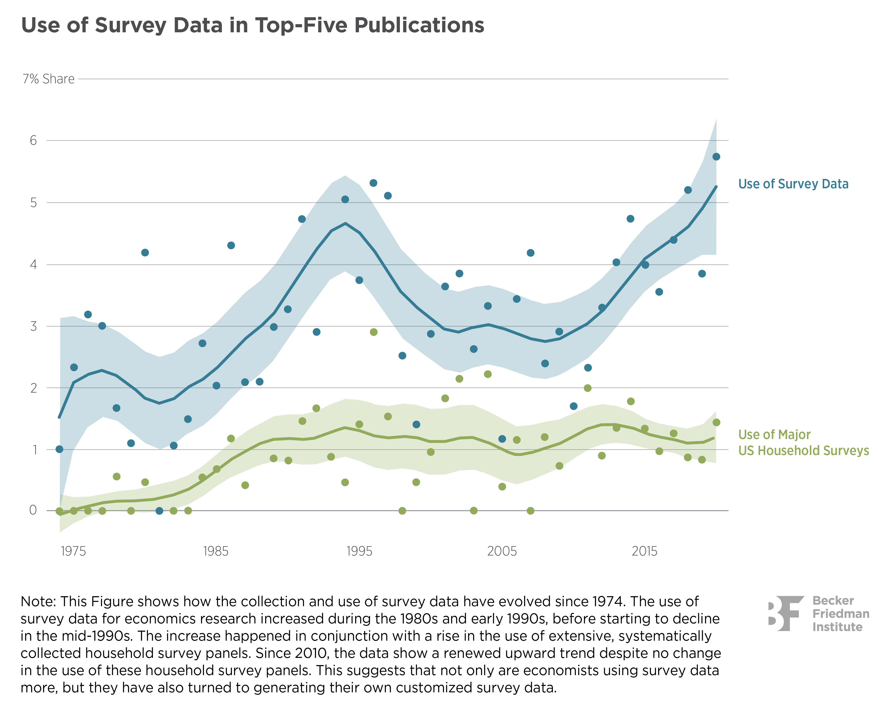 The problem was that there were little to no real-time data. It would be months before reliable statistics were available. Still, policymakers had to act. So, rather than make policy in the dark, officials reached for surveys, the only real-time source to cast at least some light on dimly understood phenomena. Economists and other researchers filled the data gap by conducting all manner of surveys about household and business activity. (See Figure 1 for trends over time.)