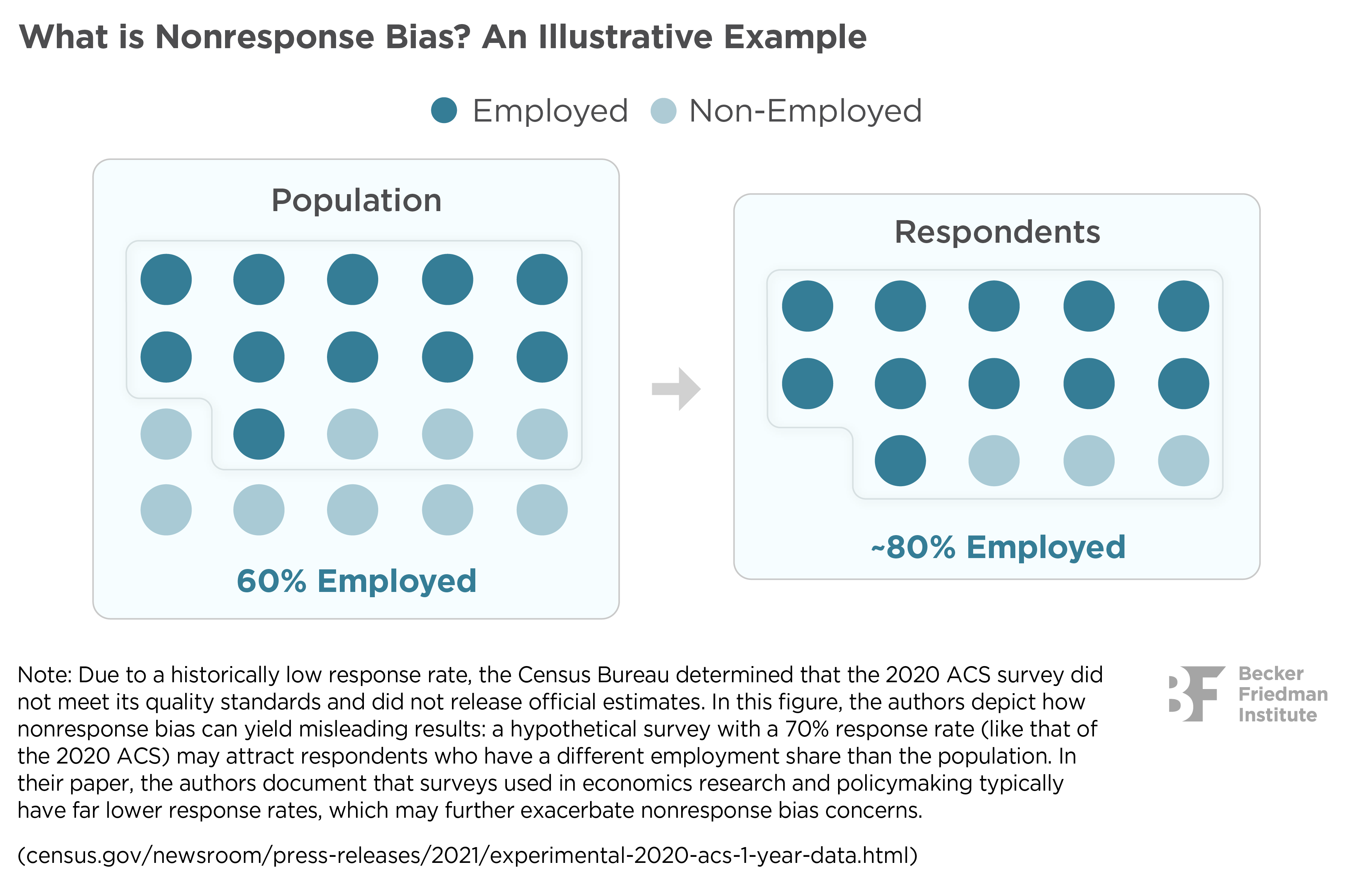 However, how accurate are such surveys? What biases lurk within the contact lists from which researchers draw individuals, and among the respondents? Importantly, even if researchers have a contact list that represents the population, what about all those people who do not respond to their surveys? What if the respondents are not representative of real activity or would otherwise skew results? These are questions that apply to all surveys, and not just COVID-related studies, and it is that last question—the impact of nonresponse bias—that motivates “Selection in Surveys,” a working paper that offers new methodological insights into survey design and provides a roadmap for researchers to get closer to the truth.